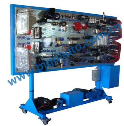 設(shè)備采用原車電器系統(tǒng)器件組成,包括:電源系統(tǒng)、起動系統(tǒng)、照明系統(tǒng)、儀表系統(tǒng)、信號系統(tǒng)、音響系統(tǒng)、玻璃清潔系統(tǒng)、中控門鎖、玻璃升降器、電動后視鏡、汽車?yán)群托铍姵氐?。外加系統(tǒng)主要包括: 故障設(shè)置系統(tǒng)、故障顯示裝置、驅(qū)動電機、電源總開關(guān)、檢測端子以及安全防護裝置等。本臺架可以完整展示車身電器系統(tǒng)的組成、結(jié)構(gòu)和工作原理,可以進行車身電器系統(tǒng)常見故障的模擬、診斷和檢測實操訓(xùn)練,提高學(xué)生分析和解決實際問題的能力,適合中高等汽車院校與培訓(xùn)機構(gòu)對學(xué)員進行車身電器系統(tǒng)的教學(xué)需要。