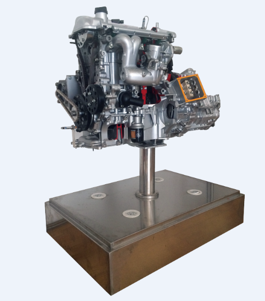 備采用電控發(fā)動機總成實物制作,發(fā)動機的關鍵部位加以爆炸式解剖,解剖剖面采用硬拉絲鍍膜工藝、精細分色,內部和外部機件電鍍處理,其他部件鈍化防腐,根據用戶要求采用各種材質、各種形狀的底座。發(fā)動機采用減速電機驅動。配置射燈直觀、清晰觀察發(fā)動機的組成和機構的運動關系,采用光電程控技術,通過LED燈顯示發(fā)動機各缸工作狀態(tài)。氣缸、活塞、曲軸連桿、凸輪軸、進氣門、排氣門、氣門頂、火花塞、噴油器、進氣歧管、排氣歧管、發(fā)電機、機油泵、水泵、節(jié)溫器、噴油嘴、節(jié)氣門體等內部結構清晰可見。利用本實驗臺可以使學員輕松、真實地了解發(fā)動機機械系統(tǒng)的組成、各部件的外形、各機構彼此之間的連接和運動關系,加深學生對發(fā)動機機械系統(tǒng)組成和工作原理的理解,幫助學生理解抽象的控制理論。本實驗臺制作精致,設計合理,安全可靠,教學功能完備,是各類培訓機構講授汽車發(fā)動機結構課程的理想教學平臺。