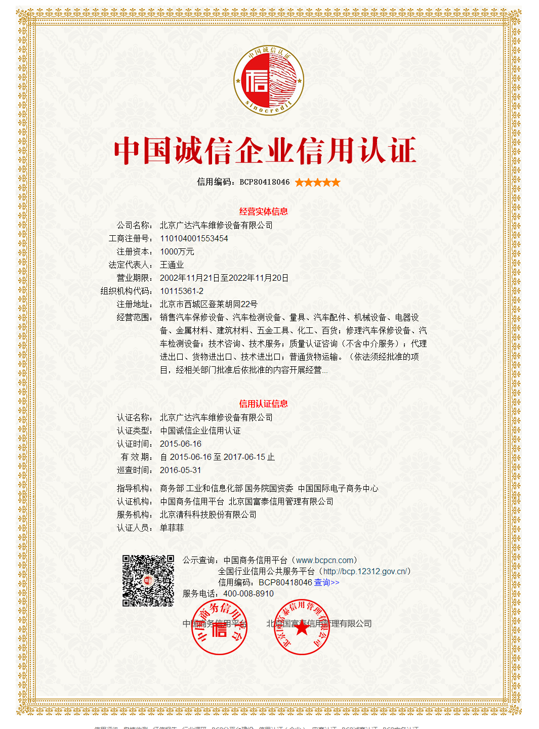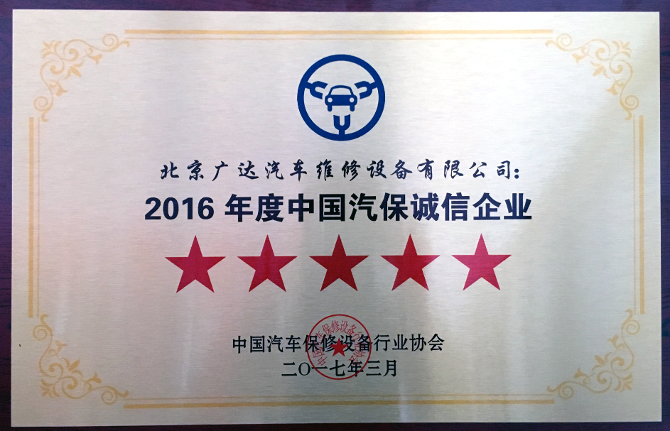 祝賀北京廣達(dá)榮獲“中國汽保誠信企業(yè)”五星級